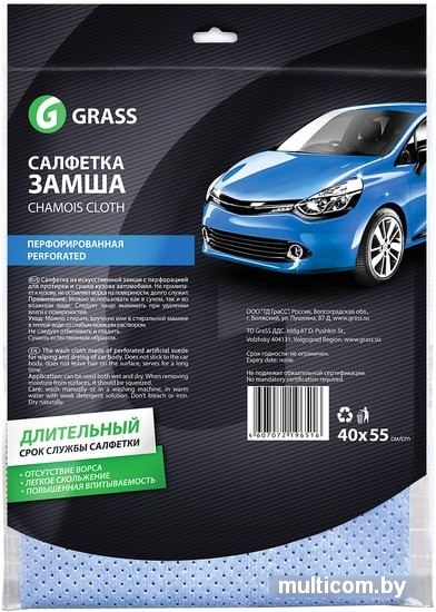 | Информация | Салфетка из искусственной замши с перфорацией для протирки и сушки кузова автомобиля. Не прилипает к кузову, не образует катышек на поверхности. |