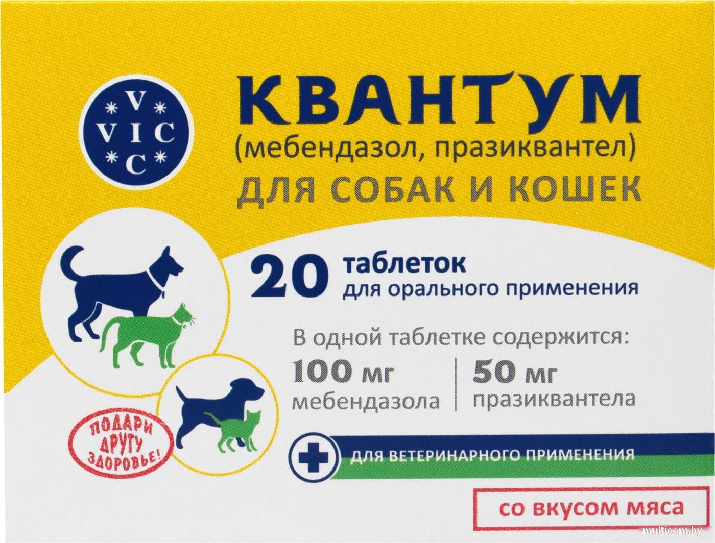 | Информация | - Обратите внимание! Этот товар доступен для заказа с доставкой или самовывозом по адресу: г. Минск, ул. Тростенецкая, 17. - Препарат предназначен для собак и кошек с профилактической и лечебной целью при различных гельминтозах, включая нематодозы (токсокароз, токсаскаридоз, дифиляриоз) и цестодозы (дипилидоз, тениидоз, эхинококкоз, унцинариоз). - Применение: давайте животным препарат индивидуально, однократно, во время утреннего кормления с небольшим количеством корма. Не требуется предварительная голодная диета или применение слабительных средств. Дозировка составляет 1 таблетка на 10 кг массы животного, что соответствует: - Для кошек и маленьких собак массой: - 0,5-2 кг — ? таблетки; - 2-5 кг — ? таблетки; - 5-10 кг — 1 таблетка. - Для средних собак массой: - 10-20 кг — 2 таблетки; - 20-30 кг — 3 таблетки. - Для больших собак массой: - 30-40 кг и более — 4 таблетки. - При высокой степени инвазии обработку следует повторить через 14 дней. С лечебной целью дегельминтизация проводится по показаниям, а с профилактической целью — ежеквартально и за 5-14 дней до вакцинации. - Перед использованием препарата обязательно проконсультируйтесь с ветеринарным врачом. |