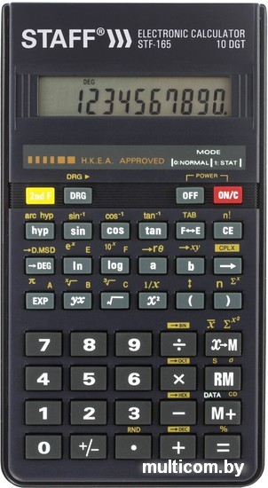 | Информация | Непрограммируемый инженерный калькулятор STAFF STF-165 выполняет все основные вычисления, которые понадобятся школьникам на экзаменах и контрольных работах по физике, химии, биологии и географии. Сертифицирован для использования на ЕГЭ и ОГЭ. 128 встроенных научных и статистических функций позволяют вычислять степени и квадратные корни, логарифмы и антилогарифмы, прямые и обратные тригонометрические функции. Устройство также осуществляет статистические расчёты, тригонометрические расчёты в градусах, радианах и градах. Калькулятор может переключаться между двоичной, восьмеричной и шестнадцатеричной системами исчисления. Вычислительная мощность калькулятора позволяет обрабатывать до пятнадцати уровней выражений в скобках. Встроенный аккумулятор обеспечивает длительную работу устройства при любом освещении. Мягкие резиновые кнопки нажимаются легко и тихо. Практичный пластиковый футляр защищает калькулятор от грязи и случайного включения. |