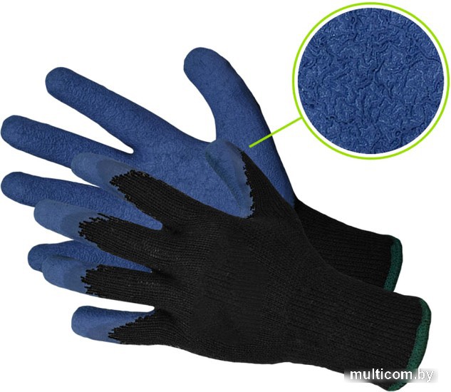 размер 11, многоразовые, с латексным покрытием, 1 пара в упаковке, синий/черный