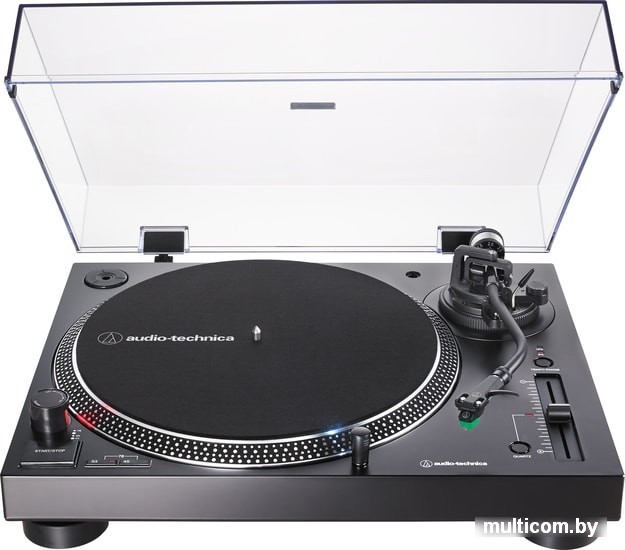 | Информация | Проигрыватель Audio-Technica AT-LP120XUSB продолжает эволюционную линию предыдущей диджейской версии LP120-USB, но отличается от нее новым, более эффективным электромотором постоянного тока с высоким крутящим моментом, а также улучшенным встроенным фонокорректором.Модель имеет прямой привод и поддерживает скорости вращения в 33,3, 45 и 78 об/мин, которые выбираются двумя кнопками и настраиваются с помощью стробоскопической лампы и меток, нанесенных на опорный алюминиевый диск. Для варьирования и регулировки скорости вращения используется фейдер Pitch Сontrol, работающий в паре с кнопкой кварцевой блокировки. При этом также можно задействовать расположенную за фейдером клавишу выбора диапазонов настройки в пределах 8 или 16 процентов. На опорный диск уложен фетровый мат, препятствующий проскальзыванию виниловых пластинок.Отлично демпфированное шасси проигрывателя опирается на регулируемые по высоте ножки. В Audio-Technica AT-LP120XUSB установлен S-образный тонарм с возможностью выбора прижимной силы, настраиваемой системой антискейтинга и гидравлическим микролифтом. Тонарм имеет съемный шелл AT-HS6, к которому крепится предустановленная на заводе головка звукоснимателя AT-VM95E с двойной подвижной магнитной системой и легкосъемной иглой с эллиптическим профилем. На верхней площадке корпуса установлен фонарь подсветки для обеспечения более комфортной работы с проигрывателем в темноте. |