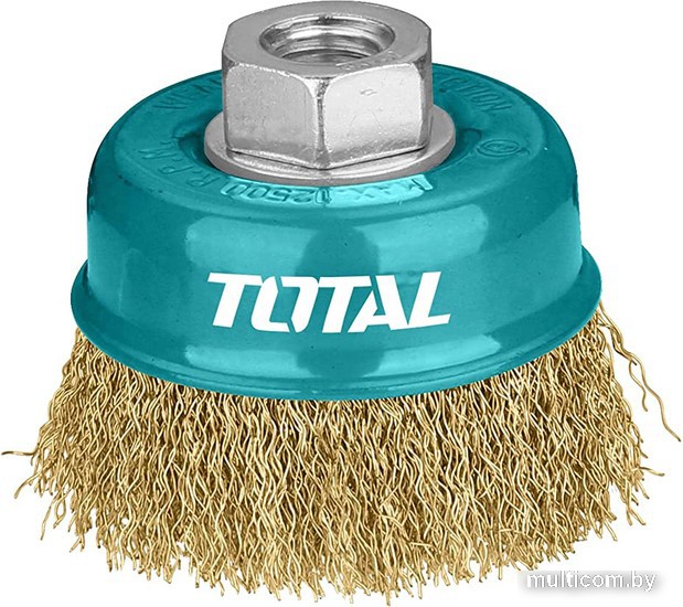 щетка для электроинструмента, 1 шт, чашечная, ворс: гофра (сталь), обрабатываемый материал: дерево/металл, диаметр 75 мм, резьба M14