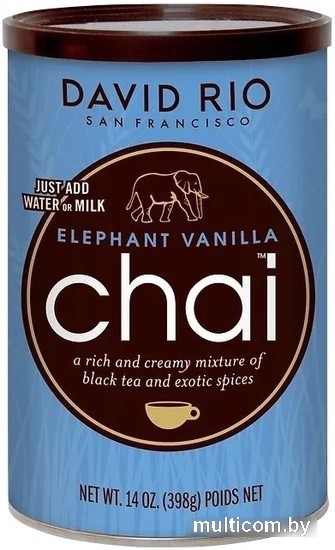 | Информация | DAVID RIO Elephant Vanilla -это первый сорт чая, который был выпущен, и он до сих пор очень популярен — тому причиной чистый и нежный аромат ванили. Особенно восхитителен этот чай в охлажденном виде с несколькими кусочками льда. |