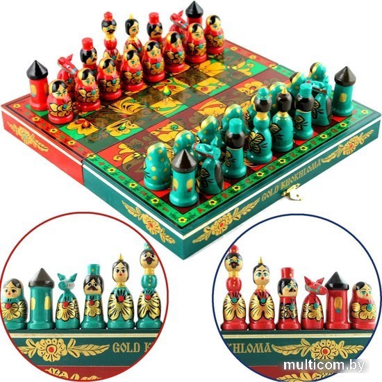 | Информация | Шахматы на тему Золотая Хохлома в виде матрешек, одетых в яркие богатые костюмы. Шахматные фигуры с валяным дном вырезаны из дерева и идеально расписаны вручную; Складная шахматная доска изготовлена ??из высококачественной древесины, что делает ее долговечной в использовании. Доска складывается в коробку для хранения; Набор деревянных шахмат - отличная развивающая игра, которая поможет детям развить логику и критическое мышление; Размеры шахматной доски 12 дюймов (30 см) x 12 дюймов (30 см) в открытом состоянии. Король имеет рост 3,1 дюйма (8,5 см), а королева — 2,8 дюйма (7,5 см). Набор шахмат для взрослых и детей имеет идеальный размер для удобной игры. |
