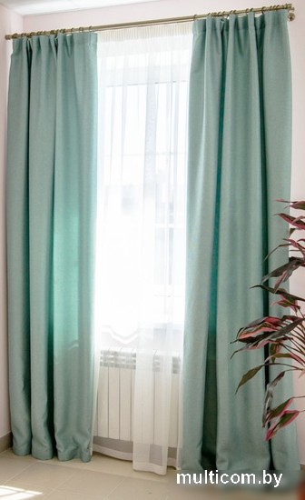 213 х 260 см, рогожка, для жилой комнаты, бирюзовый, крепление крючки, ночные