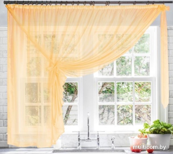 290 х 170 см, полиэстер/вуаль, для жилой комнаты, золотистый, крепление тесьма, прозрачные