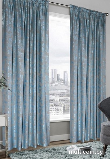 150 х 270 см, полиэстер/бархат, для жилой комнаты, бирюзовый, крепление тесьма