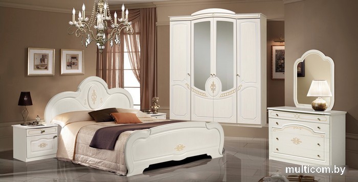 | Состав комплекта | двуспальная кровать, зеркало интерьерное, комод, тумба, шкаф |