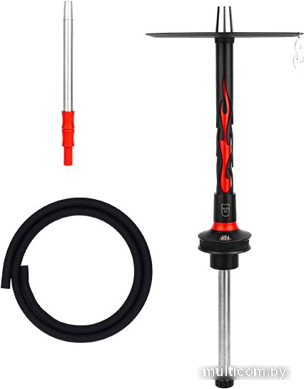 кальян-палка, разборный, материал шахты нержавеющая сталь, соединение шахты и колбы уплотнитель, цвет шахты красный/черный, цвет шланга черный