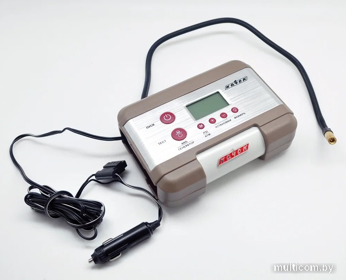 | Информация | Этот компактный и высокопроизводительный компрессор с цифровым манометром оптимален для кроссоверов, легковых автомобилей и мототехники. На фронтальной панели находится большой многофункциональный дисплей с синей подсветкой и кнопками управления. Есть возможность включения фонарика, который пригодится в темное время суток. Различные насадки на шланг позволяют накачивать не только автомобильную шину, но и другие надувные изделия. |