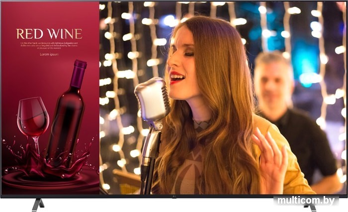 75" 3840x600, матрица IPS, яркость 330 кд/м2, контраст 1200:1, BT, Wi-Fi,USB