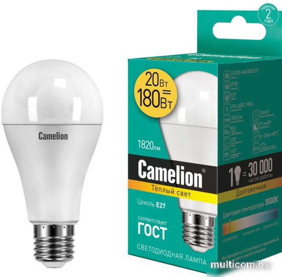 Светодиодная лампочка Camelion LED20-A65/830/E27 13164