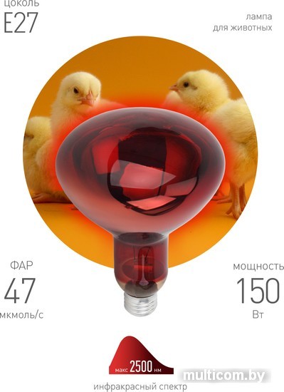 Инфракрасная лампа ЭРА ИКЗК 230-150 R127 Е27 Б0055441