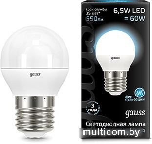 Светодиодная лампочка Gauss E27 6.5Вт 4100К 105102207 (10 шт)