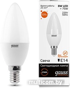 Светодиодная лампа Gauss Elementary E14 8Вт 2700K [33118]