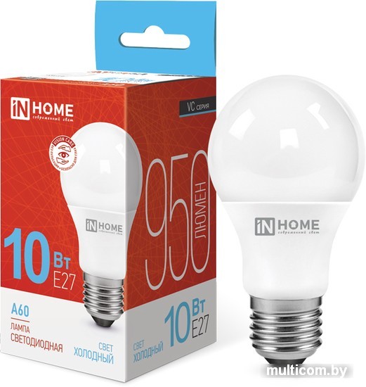 Светодиодная лампочка In Home LED-A60-VC 10Вт 230В Е27 6500К 950Лм 4690612020228