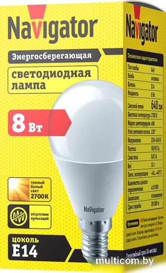 Светодиодная лампочка Navigator NLLB-G45-8-230-2.7K-E14