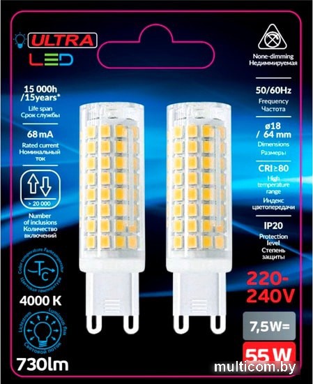 Светодиодная лампа Ultra LED G9 7.5 Вт 4000 К (2 шт)