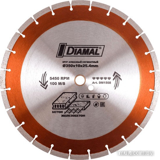 | Информация | Диск алмазный сегментный DIAMAL 350 мм DM1508 при высокой скорости резания и хорошем ресурсе имеет идеальное соотношение цена-качество. Обеспечивает быструю и эффективную работу при сухой резке. Диск отрезной сегментный 350 мм DMS1508 показывает хорошие результаты по резке бетона, железобетона |